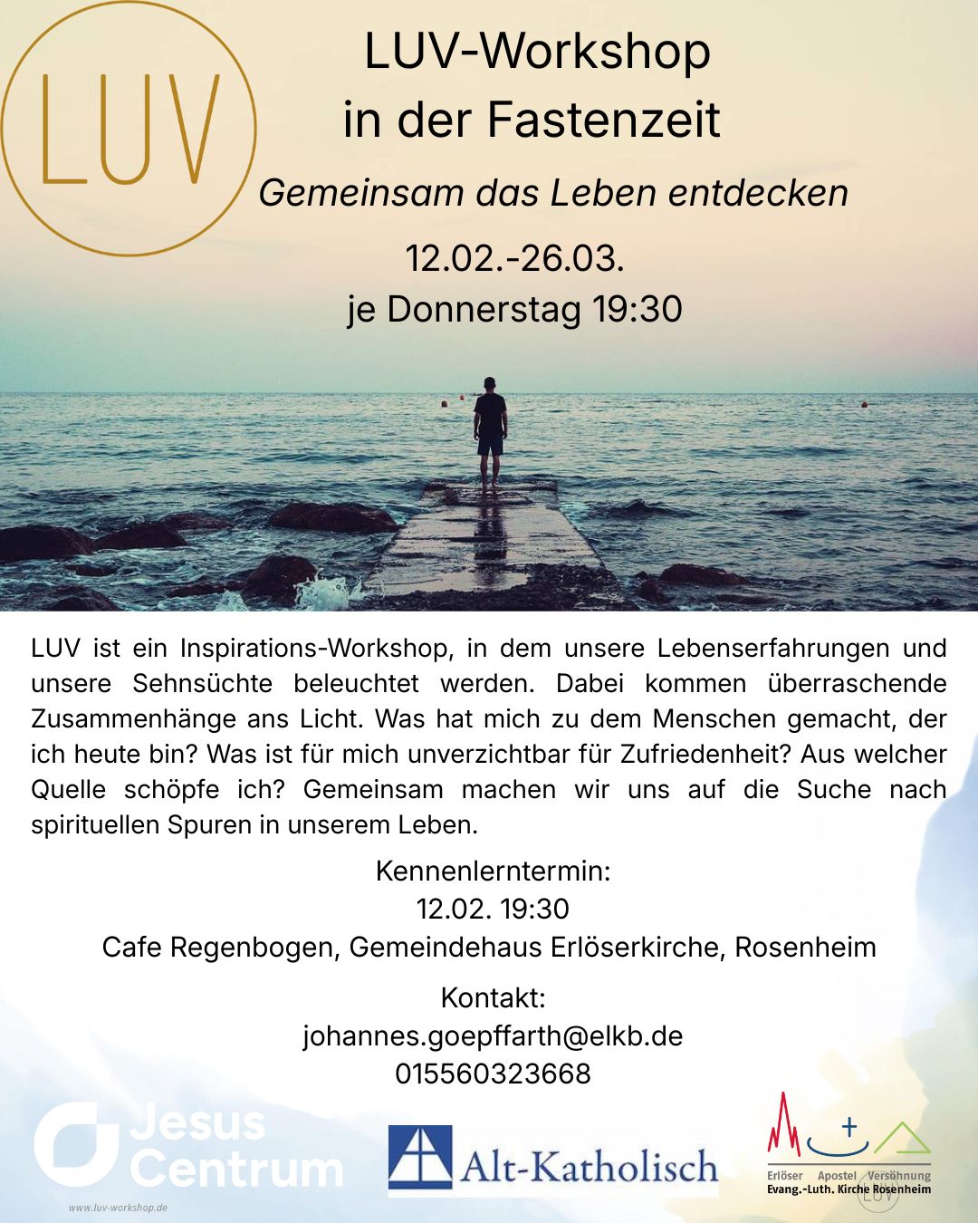 Vom 12.02. bis 26.03. führen wir gemeinsam mit den Altkatholiken in Rosenheim und dem JesusCentrum Rosenheim (Methodisten) den LUV-Workshop durch.